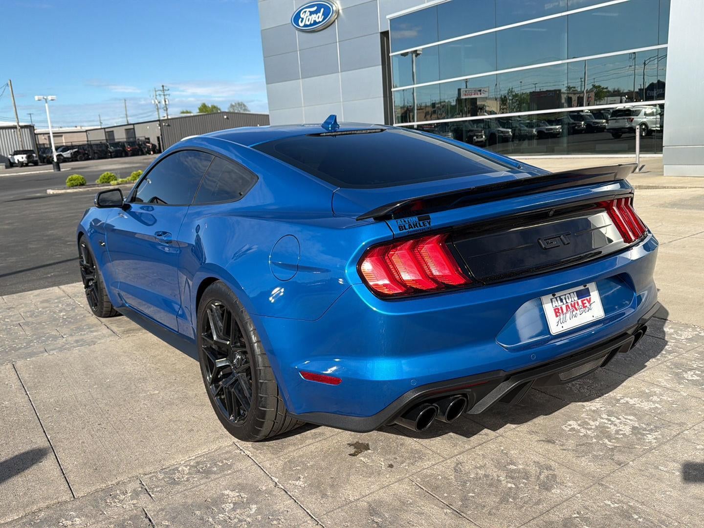This Velocity Blue 2021 Ford Mustang GT Premium located at Alton Blakley Ford is ready for immediate delivery.